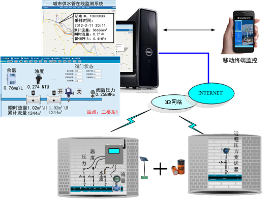 為保證供水工作的科學(xué)性,依靠現(xiàn)代計算機(jī)通信技術(shù)和傳感技術(shù),實施對供水管道的無人化遠(yuǎn)程實時監(jiān)測,并且能夠自動傳輸?shù)缴厦娓骷壷鞴懿块T,監(jiān)測輸水管道、城市供水管道的壓力、流量信息;及時發(fā)現(xiàn)管網(wǎng)故障,提高維護(hù)效率、降低損失,保障輸水、供水質(zhì)量,達(dá)到科學(xué)預(yù)警,減少成本,提高效率的目的