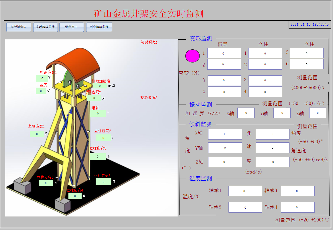 基于XIoT技術(shù)的煤礦井架安全實(shí)時監(jiān)測系統(tǒng),實(shí)時監(jiān)測井架環(huán)境參數(shù)。當(dāng)參數(shù)異常或出現(xiàn)險情時,中控室發(fā)出報警聲提醒工作人員。 1) 需提供攝像頭實(shí)時監(jiān)測井架周邊情況 ; 2) 實(shí)時監(jiān)測井架受力情況、振動情況、傾斜情況及軸承溫度情況; 3) PC界面可實(shí)時查看數(shù)據(jù)信...