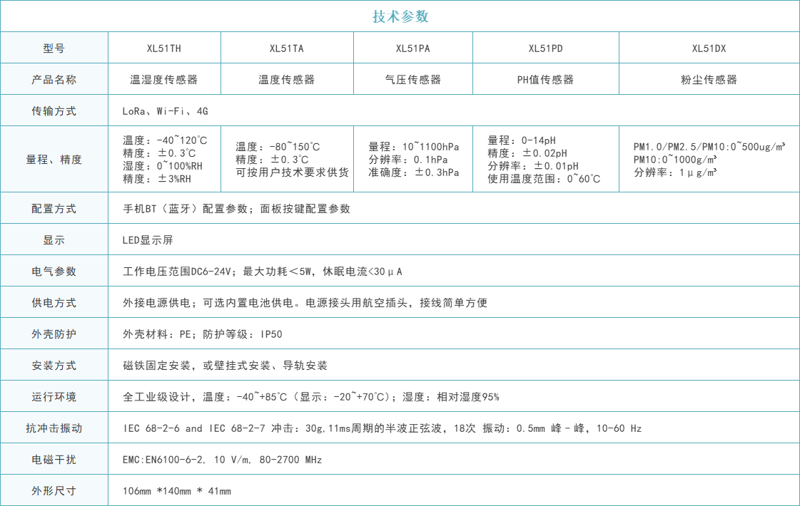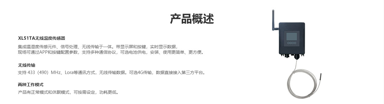 XL51TA無線溫度傳感器,集成溫度傳感元件、信號(hào)處理、無線傳輸于一體。帶顯示屏和按鍵,實(shí)時(shí)顯示數(shù)據(jù),現(xiàn)場(chǎng)可通過APP和按鍵配置參數(shù),支持多種通信協(xié)議,可選電池供電,安裝、使用更簡(jiǎn)單、更方便。