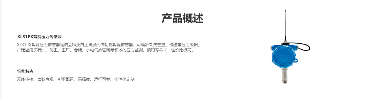 XL31PX智能壓力傳感器是信立科技自主研發(fā)的低功耗智能傳感器,可精準(zhǔn)采集管道、儲(chǔ)罐等壓力數(shù)據(jù)。