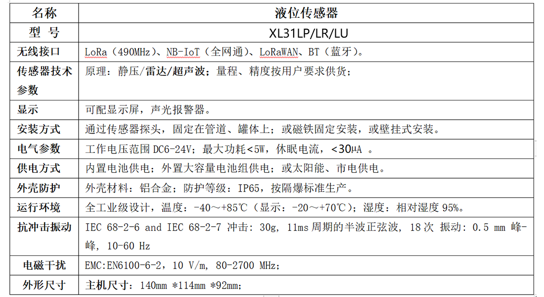 XL31LP智能液位傳感器,是按低功耗、隔爆標(biāo)準(zhǔn)研發(fā)、設(shè)計(jì)、生產(chǎn)。用于監(jiān)測,儲(chǔ)罐,水箱、水池,管井、管溝,河流、湖泊,等水位。