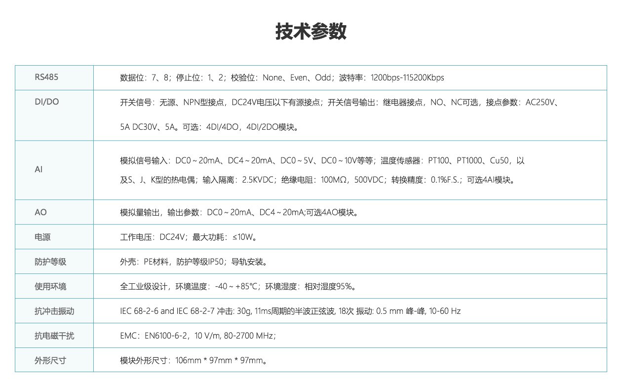 I/O模塊可獨立使用,支持RS485和標準的Modbus RTU通信協(xié)議輸出數(shù)據(jù)。