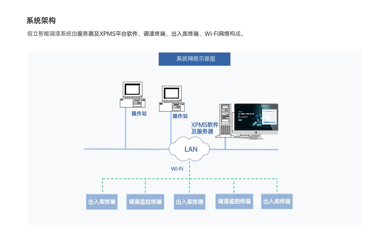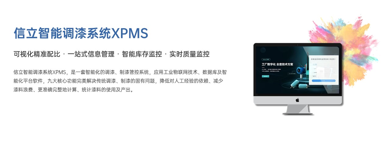信立調(diào)漆管控系統(tǒng)XPMS,應(yīng)用工業(yè)物聯(lián)網(wǎng)技術(shù)、數(shù)據(jù)庫及智能化平臺軟件,標(biāo)準(zhǔn)、規(guī)范、指導(dǎo)、監(jiān)管調(diào)漆過程,實(shí)現(xiàn)調(diào)漆操作智能化、簡單化,有效提升調(diào)漆質(zhì)量、減少漆料浪費(fèi),降低人為因素風(fēng)險(xiǎn),是一套智能化的調(diào)漆、制漆管控系統(tǒng)。