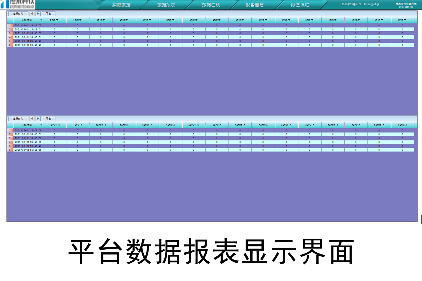 3.在平臺軟件界面上展示,并形成相關數據的報表、曲線等;