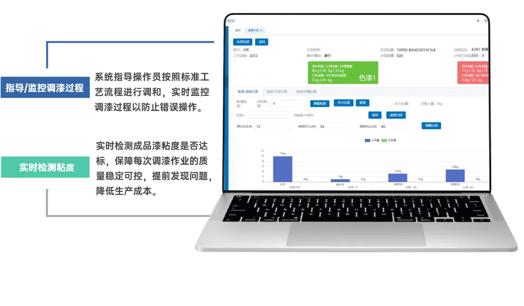 在傳統(tǒng)的調(diào)漆和制漆過(guò)程中,過(guò)于依賴個(gè)人經(jīng)驗(yàn)技能,靠師傅帶徒弟的方式培訓(xùn),人為因素容易導(dǎo)致調(diào)漆質(zhì)量不穩(wěn)定、風(fēng)險(xiǎn)大;漆料選用、使用、調(diào)漆操作等都依賴人工記錄,導(dǎo)致質(zhì)量問(wèn)題無(wú)法追溯、漆料浪費(fèi)大、統(tǒng)計(jì)數(shù)據(jù)不準(zhǔn)確等問(wèn)題。