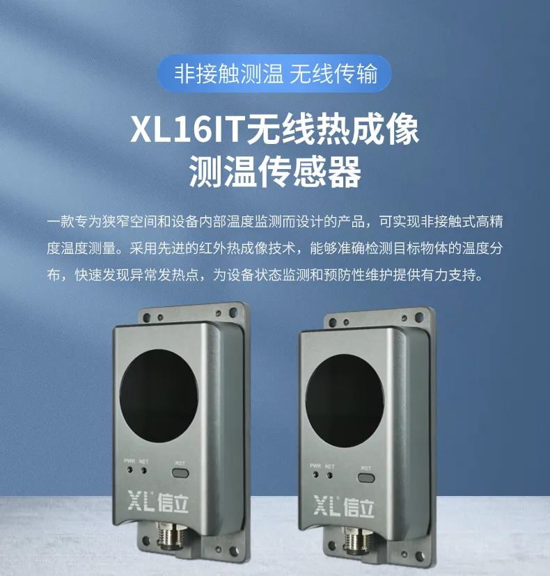 采用XL16IT無線紅外熱成像測溫傳感器,實現(xiàn)對配電柜、變壓器等電氣設(shè)備母線、銅排、電纜連接部位的非接觸式溫度監(jiān)測。配置氧化釩非制冷型探測元件,可同時監(jiān)測10個點、10個框、1條線的溫度,測溫范圍廣、精度高。